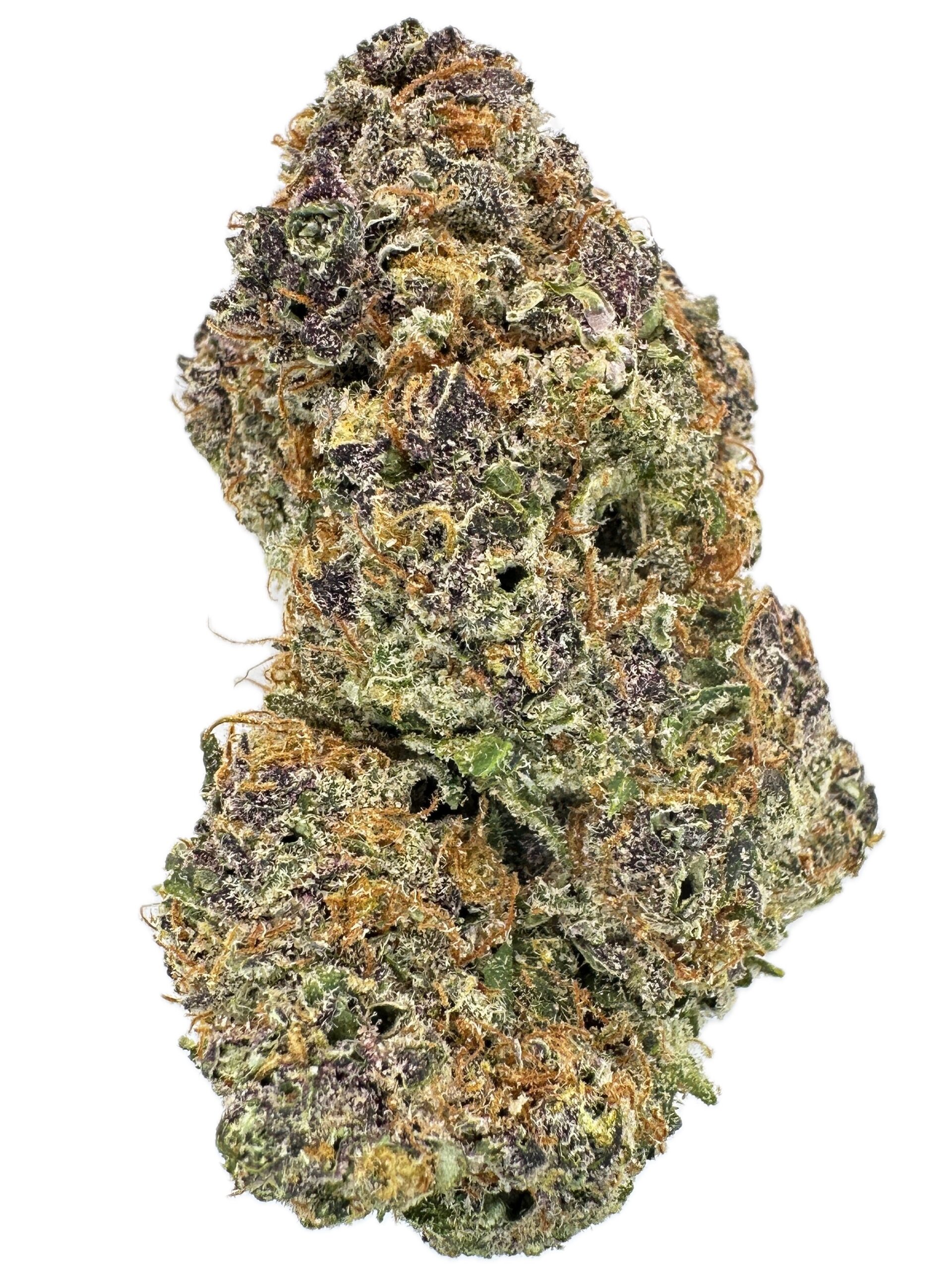 Hot Tamalez is an indica dominant hybrid strain created through an unknown combination of other powerful hybrid strains, although it is thought to be a member of the Zkittlez family. Hot Tamalez high comes on hard and fast, warming you from head to toe with immediate waves of soothing relaxation. You’ll find any aches and tension melted away, replaced with a gooey sense of couchlock that has you feeling like you might never be able to get off of the couch. A deep sedation wraps things up, wrapping you in a hazy sense of sleepy bliss that has you ready to get dozing. With these effects and its super high THC level, Hot Tamalez is often suggested to treat insomnia, chronic pain, chronic stress or anxiety, PTSD and muscle spasms or cramps.